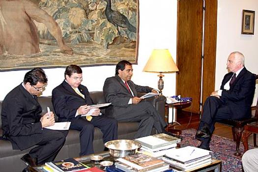 Brasília, 04/07/2008 - O governo federal e o Conselho Federal da Ordem dos Advogados do Brasil (OAB) podem firmar um acordo e estabelecer parcerias com escritórios de advocacia na Alemanha e nos Estados Unidos para defender os interesses brasileiros no tocante a registros de produtos essencialmente nacionais. A possibilidade foi debatida em reunião entre o presidente nacional da OAB, Cezar Britto, o presidente da Comissão Nacional de Relações Internacionais da entidade e membro honorário vitalício da OAB, Roberto Busato, e o ministro de Estado Interino das Relações Exteriores, Samuel Pinheiro Guimarães.