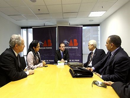 Brasília, 06/05/2010 - O presidente nacional da Ordem dos Advogados do Brasil (OAB), Ophir Cavalcante, recebeu hoje (06) o presidente da Associação dos Oficiais Militares Estaduais do Brasil (AME), coronel Abelmídio de Sá Ribas, que requereu o apoio da OAB ao pleito da entidade, de poder atuar no regime de substituição processual na defesa de direitos individuais de militares. Ophir remeterá a matéria para análise da Comissão Nacional de Estudos Constitucionais da OAB Nacional para que esta examine a constitucionalidade do pedido.