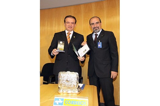 Brasília, 16/11/2010- O presidente nacional da Ordem dos Advogados do Brasil, Ophir Cavalcante, conduziu hoje (16), no início da sessão plenária da entidade, cerimônia de lançamento e obliteração do selo comemorativo dos 80 anos de criação da OAB. O ato contou com participação do diretor regional da Empresa Brasileira de Correios e Telégrafos (ECT), Elano Ferreira Crisóstomo, responsável pela concepção e elaboração do carimbo e do selo personalizado alusivos ao aniversário da OAB, além de um álbum contendo as peças filatélicas lançadas. O selo traz estampada a face do edifício-sede do Conselho Federal da entidade, em Brasília, projetado pelo arquiteto Oscar Niemeyer.