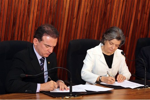 Brasília – O presidente nacional da Ordem dos Advogados do Brasil (OAB), Ophir Cavalcante, e a presidente do Tribunal Superior Eleitoral (TSE), ministra Carmen Lúcia Antunes Rocha, celebraram hoje (03) protocolo de cooperação para a realização de campanhas e projetos de conscientização quanto à importância do voto limpo nas próximas eleições municipais. A partir do convênio, o TSE incentivará os Tribunais Regionais Eleitorais e o Conselho Federal da OAB as Seccionais e Subseções a promoveram campanhas em prol do voto limpo e da efetividade da legislação eleitoral, especialmente no tocante à Lei Complementar 135/10, mais conhecida como Lei da Ficha Limpa.