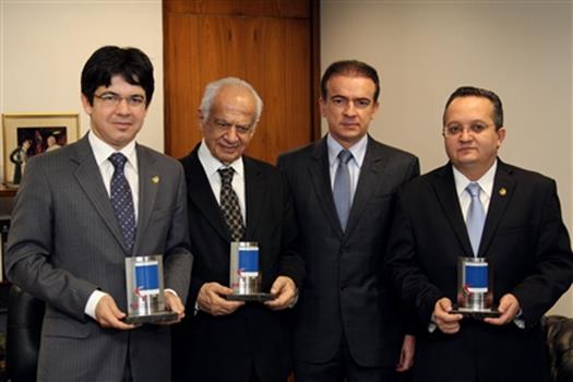 A placa de homenagem aos parlamentares ainda será entregue por Ophir a outros senadores.