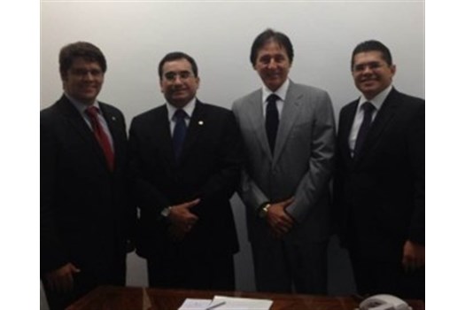 Fortaleza – O presidente da Seccional da OAB do Ceará, Valdetário Monteiro, acompanhado do secretário-geral da instituição, Jardson Cruz, e do conselheiro federal suplente, Leonardo Carvalho, se reuniram com o senador Eunício Oliveira, em Brasília, para tratar da Proposta de Emenda à Constituição (PEC) nº 61. De autoria do senador e recentemente aprovada na Comissão de Constituição, Justiça e Cidadania (CCJ) do Senado, a PEC prevê a criação de um novo Tribunal Regional Federal (TRF) com sede em Fortaleza. Este tribunal teria jurisdição nos Estados do Ceará, Piauí e Rio Grande do Norte.