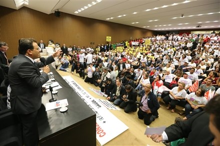 Brasília – Ao participar no começo da noite desta segunda-feira (05) da entrega das 1,9 milhão de assinaturas ao projeto de lei de iniciativa popular do Saúde+10 na Câmara dos Deputados, o presidente nacional da OAB, Marcus Vinicius Furtado, reafirmou que “o Estado brasileiro precisa se constitucionalizar e aplicar bem os recursos da saúde, com transparência”. Ao se manifestar no ato da entrega das assinaturas, ele disse também que “é preciso também aprovar uma reforma política no Brasil, pois ela está interligada à luta por saúde e por melhores condições oferecidas pelo Estado brasileiro à sociedade".