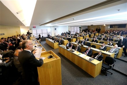 Marcus Vinicius relembrou a trajetória de Ophir Cavalcante à frente da Ordem dos Advogados do Brasil, no momento em que o Brasil saía de uma ditadura militar que durou mais de 20 anos. “Sua atuação foi essencial à consolidação dos valores constitucionais recém promulgados. Dentre suas principais iniciativas destaca-se o ajuizamento perante o STF de diversas Ações de Controle Concentrado de Constitucionalidade em defesa da Carta Cidadã, nas quais exigia auditorias na dívida externa brasileira e censurava o uso abusivo das Medidas Provisórias”, disse.