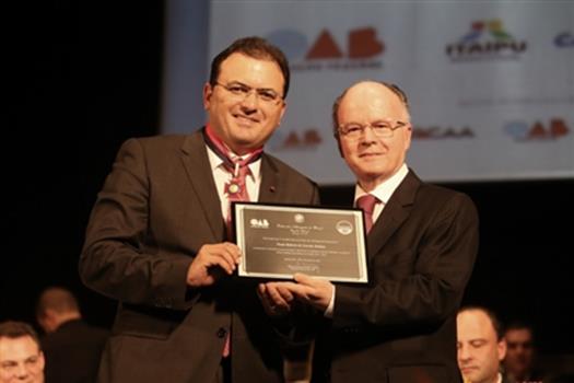 O presidente da subseção OAB Juiz de Fora, Denilson Clozato Alves, enalteceu a escolha de Juiz de Fora para sediar o Congresso. “A realização do evento aqui é uma grande conquista de nossa cidade e reforça a nossa importância. Somos uma das maiores subseções brasileiras, e por isso somos peça-chave nos debates da advocacia brasileira. Estamos honrados em sediar tão magnífico evento, mas ao mesmo tempo assumimos uma responsabilidade tão grande quanto. Discutir o direito é uma das bases da nossa cidadania”, frisou. Na ocasião, Denilson homenageou Marcus Vinicius Furtado Coêlho com a insígnia Mérito Benjamin Colucci, como reconhecimento à excelência na prestação de serviços jurídicos.