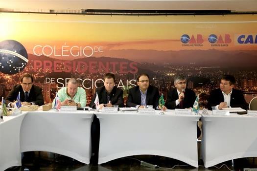Vitória (ES) – Reunido na capital do Espírito Santo, o Colégio de Presidentes das Seccionais da OAB recebeu na manhã desta sexta-feira (29) o juiz auxiliar da presidência do CNJ (Conselho Nacional de Justiça) Bráulio Gusmão, responsável pelo desenvolvimento do Escritório Digital do PJe (Processo Judicial Eletrônica).
