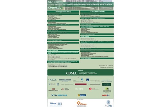 Brasília – Nos próximos dias 10 e 11 de dezembro o Centro de Convenções da Federação das Indústrias do Rio de Janeiro (Firjan) sediará o I Congresso Internacional CBMA de Arbitragem, evento realizado pelo Centro Brasileiro de Mediação e Arbitragem (CBMA) e que contará com o apoio, entre outras instituições, da Seccional fluminense da Ordem.
