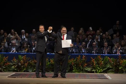 Manaus (AM) - O presidente nacional da OAB, Claudio Lamachia, esteve em Manaus na noite desta sexta-feira (5), quando empossou a nova diretoria da Seccional Amazonas, conselheiros e os membros da Caixa de Assistência dos Advogados. Durante cerimônia realizada no Teatro Amazonas, o dirigente da entidade assegurou que a OAB estará a frente de todos os grandes temas nacionais, agindo sempre em defesa da advocacia e da cidadania.