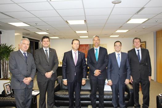 Brasília – O presidente nacional da OAB, Claudio Lamachia, e o secretário-geral, Felipe Sarmento, receberam nesta quarta-feira (13) os chefes da Delegação da União Europeia no Brasil, embaixador João Gomes Cravinho, e da Seção Política do bloco, conselheiro Stefan Simosas. O presidente da Associação Nacional de Procuradores Estaduais (Anape), Marcello Terto e Silva, também participou do encontro.