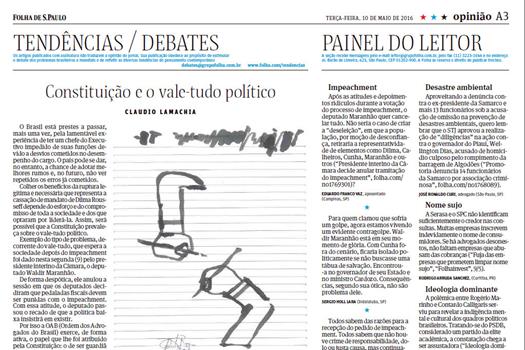 Artigo na Folha de S.Paulo: Constituição e o vale-tudo político