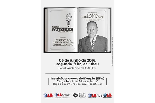 Brasília – A OAB Nacional, em parceria com a Seccional do Distrito Federal, promove palestra com o juiz da Corte Interamericana de Direitos Humanos Eugênio Raul Zaffaroni. O magistrado apresentará aula sobre os desafios do sistema penal da América Latina, na segunda-feira (6), na sede da OAB-DF. As inscrições são gratuitas, mediante doação de um 1kg de alimento não perecível.