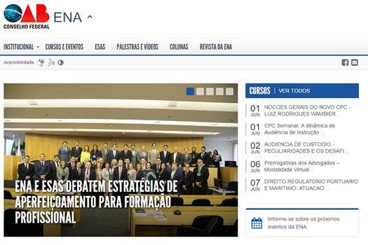 O novo site da ENA tem desenho semelhante ao do Conselho Federal e apresenta diversas novidades, como atualização on-line dos cursos das ESAs de todos os Estados, espaço próprio para colunas e artigos, assim como notícias relacionadas à ENA e às ESAs. Também há aba específica para vídeos e palestras, além de informações institucionais: histórico, diretoria e relatórios de gestão.