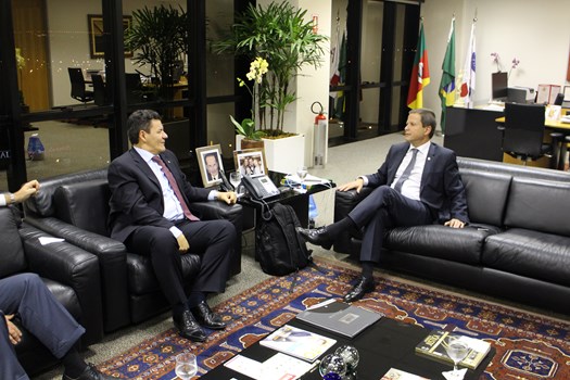 Brasília – O presidente nacional da OAB, Claudio Lamachia, recebeu nesta terça-feira (16), em visita de cortesia, o presidente Ajufe (Associação dos Juízes Federais do Brasil), Juiz Roberto Carvalho Veloso. Além de Veloso, participaram ainda do encontro, o juiz Nelson Gustavo Mesquita Ribeiro Alves, vice-presidente da 4ª Região, o juiz Antônio José de Carvalho Araújo, vice-presidente da 5ª Região, e o desembargador Márcio Antonio Rocha, do Tribunal Regional Federal da 4ª região.