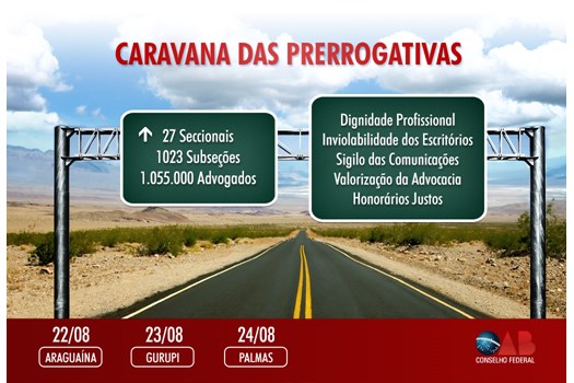 Brasília - O Conselho Federal da Ordem dos Advogados do Brasil, por intermédio da Comissão Nacional de Defesa das Prerrogativas e Valorização da Advocacia inicia nesta segunda-feira (22), em Araguaína, a Caravana de Prerrogativas no Estado do Tocantins. Até o dia 25, a caravana percorrerá as cidades de Gurupi e a capital Palmas. Em busca de identificar e combater o desrespeito às prerrogativas profissionais dos advogados, a caravana procura promover a dignidade profissional, a inviolabilidade de escritórios, o sigilo das comunicações, a valorização da advocacia e honorários justos.