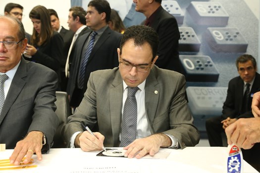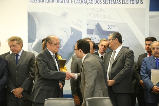 Brasília – O Secretário-Geral da OAB, Felipe Sarmento Cordeiro, participou na noite desta terça-feira da Cerimônia de Assinatura Digital e Lacração dos sistemas que serão utilizados nas eleições de outubro. Os sistemas foram lacrados e assinados digitalmente. Participaram do procedimento, além de Cordeiro, o presidente do TSE, ministro Gilmar Mendes, e representantes do Ministério Público, de partidos políticos, congressistas, do Supremo Tribunal Federal e membros do Executivo.