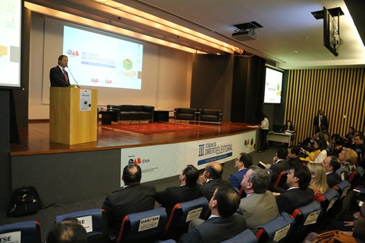 O membro honorário vitalício Marcus Vinicius Furtado Coêlho foi o palestrante do primeiro painel do III Fórum de Direito Eleitoral, abordando em sua aula os princípios do direito constitucional. Também saudou o papel da OAB e da ENA no processo de melhoria do país, lutando sempre pelo aprimoramento das instituições republicanas.