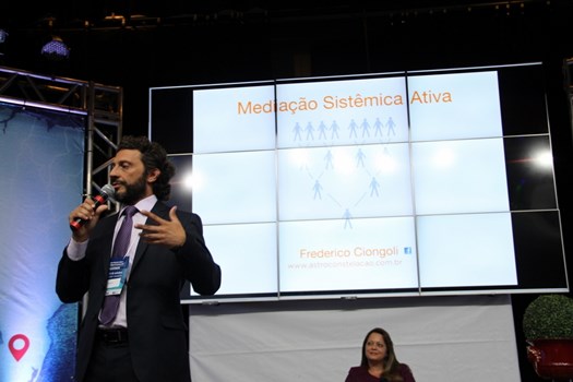 O advogado Frederico falou sobre Mediação Sistêmica Ativa. Conforme o profissional, os trabalhos de constelações familiares trazem com rapidez a raiz do conflito. “A constelação familiar não dá conselhos, pitacos e nem faz terapia, mas sim traz à tona a responsabilidade da pessoa naquele conflito com profundidade. O oculto vai vir à tona de uma forma surpreendente”, salientou. E para finalizar, o jurista fez ainda uma simulação da constelação familiar e interagiu com a plateia.