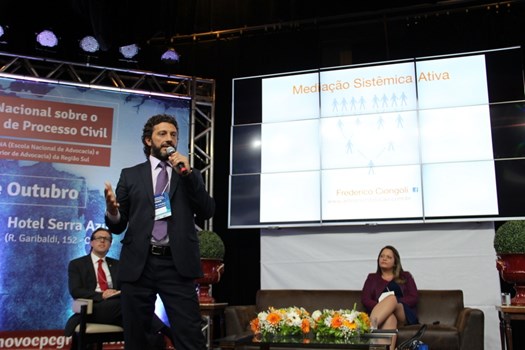 Concluindo o último painel do dia, a advogada Fernanda Tartuce e o advogado Frederico Ciongoli falaram sobre a Mediação e Conciliação, novas formas no novo CPC.