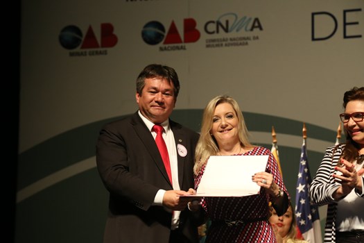 Ibaneis Rocha, secretário-geral adjunto, e Antonio Oneildo, diretor-tesoureiro nacional da OAB, entregaram a Annette uma placa em nome do Conselho Federal e da seccional mineira “por dignificar a profissão de mulher advogada com ética, respeito e cuidado com o ser humano em busca da justiça social”.