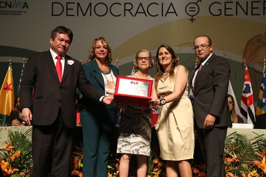 “Não sou boa de palavras no microfone. Sou boa com as palavras no atendimento aos clientes. As mulheres advogadas já estão ocupando lugar de destaque e deixo aqui a colaboração das colegas do centro de defesa para todas vocês”, disse.