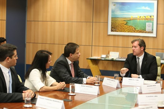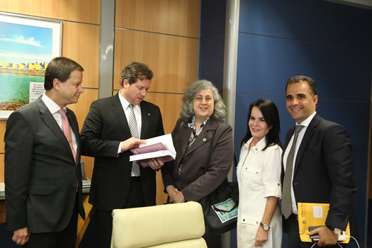 Brasília – O presidente nacional da OAB, Claudio Lamachia, esteve na tarde desta terça-feira (20) com o ministro do Turismo, Marx Beltrão, para falar a respeito da resolução da Agência Nacional de Aviação Civil (Anac) que libera as companhias aéreas a cobrar por bagagens despachadas nos voos nacionais e internacionais. Atualmente essa cobrança não é feita. Acompanharam o encontro a presidente da Comissão Especial de Defesa do Consumidor, Marié Lima Alves de Miranda, a vice-presidente da Comissão, Claudia Lima, o secretário da comissão, Gustavo Chalfun, e o presidente da Comissão de Defesa do Consumidor da OAB Alagoas, Thiago Ferreira Wanderley.