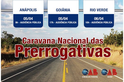 Brasília – A Seccional goiana da OAB receberá, em 5 e 6 de abril de 2017, mais uma etapa da Caravana Nacional das Prerrogativas, iniciativa que percorre o país realizando reuniões, audiências, visitas, inspeções e palestras com o intuito de preservar a dignidade profissional dos advogados, garantindo o respeito e a valorização da advocacia.