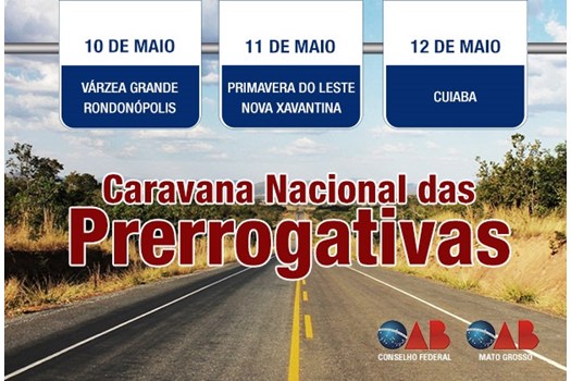 Brasília – A Caravana Nacional de Prerrogativas já tem definido seu próximo destino: a Seccional mato-grossense. Nos dias 10, 11 e 12 de maio, a comitiva percorrerá Várzea Grande, Rondonópolis, Primavera do Leste, Nova Xavantina e a capital, Cuiabá.
