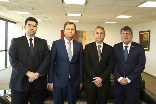 Brasília – O presidente nacional da OAB, Claudio Lamachia, acompanhado do presidente da Comissão Especial de Advocacia em Estatais, Carlos Castro, recebeu nesta quarta-feira (31) a visita dos diretores eleitos da Associação dos Advogados do Banco do Brasil (ASABB), Luis Roberto Ferreira Vaz (presidente) e Igor D’Moura Cavalcante (vice).