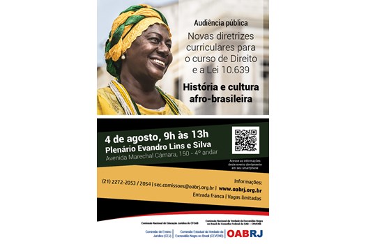 Brasília (DF) e Rio de Janeiro (RJ) – Na próxima sexta-feira (4), a OAB-RJ sediará uma audiência pública que trará ao debate as novas diretrizes curriculares para o curso de Direito sob o enfoque da Lei 10.639/2003, que inclui no currículo oficial da Rede de Ensino a obrigatoriedade da temática "História e Cultura Afro-Brasileira”.