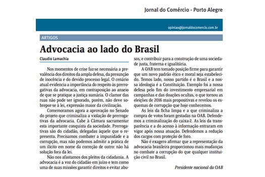 Jornal do Comércio: Advocacia ao lado do Brasil