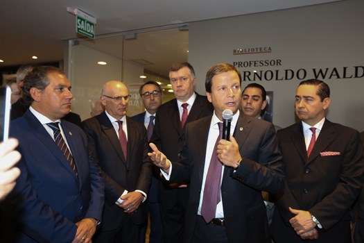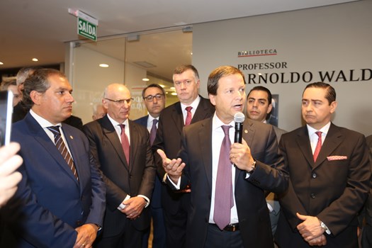 Lamachia e Marcos foram recebidos pelo presidente do IASP, José Horácio Halfeld Rezende Ribeiro, que apresentou a eles as estruturas inauguradas: a Biblioteca Professor Arnoldo Wald, o Auditório Professor Miguel Reale, o Auditório Deputado Freitas Nobre e a Sala Arnaldo José Pacífico.