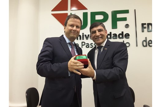 Na solenidade, o reitor da UPF, José Carles de Souza, entregou a medalha Universidade de Passo Fundo ao dirigente nacional da OAB. Há 60 anos, a UPF concede a honraria a personalidades gaúchas que se destacaram nacionalmente por trabalhos prestados à sociedade. Somente 10 pessoas já receberam a distinção durante esses anos.