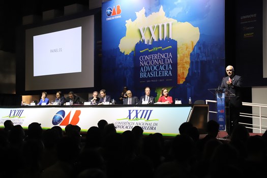 São Paulo - O respeito às normas internacionais dos direitos humanos e à divisão de poderes deu o tom do Painel 1 – Dignidade da Pessoa Humana - no primeiro dia da XXIII Conferência Nacional da Advocacia Brasileira. A mesa, que ocorreu ao longo da tarde de segunda-feira (27) com excelente presença de público, foi presidida por Ophir Filgueiras Cavalcante Júnior e contou com a relatoria de Sílvio Pessoa de Carvalho Júnior e secretaria de Antonio Cândido Barra Monteiro de Britto.