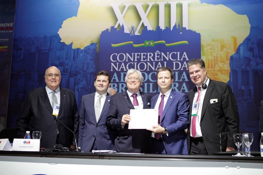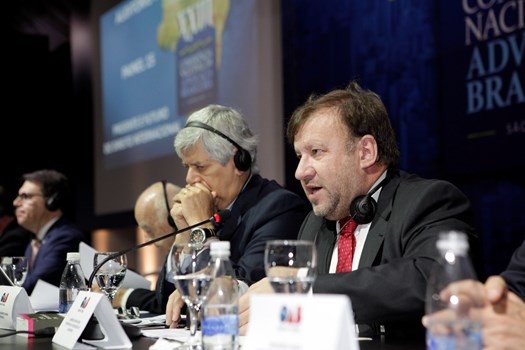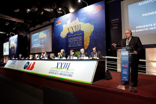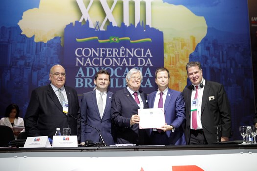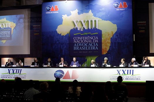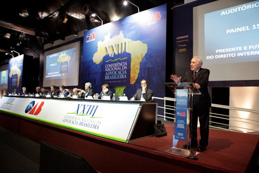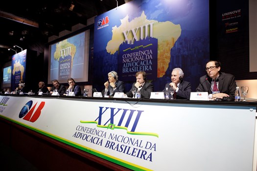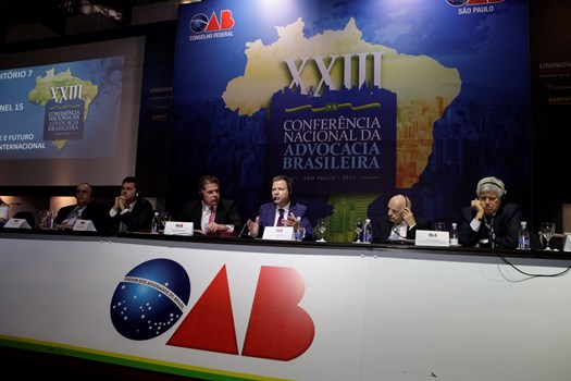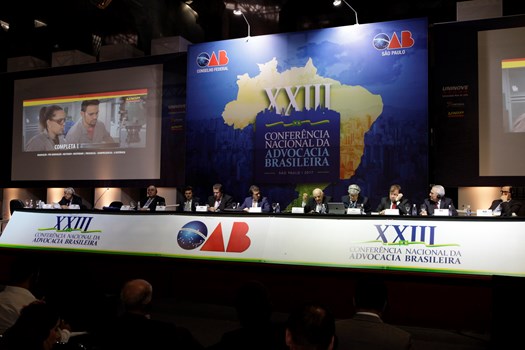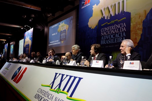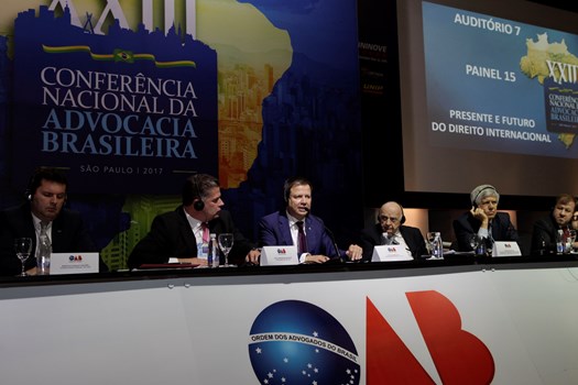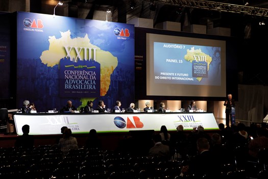 Paulo Marcondes Brincas, presidente da OAB de Santa Catarina, dirigiu os trabalhos com relatoria de Marcelo Lovacat Galvão e a secretaria de Erik Limongi Sial. Os conferencistas expuseram concepções distintas sobre soberania e para os eixos centrais da ação do direito internacional. O presidente nacional da OAB, Claudio Lamachia, compareceu ao evento para saudar a qualidade dos congressistas, responsáveis por tornar a XXIII Conferência Nacional da Advocacia no maior evento jurídico do mundo.