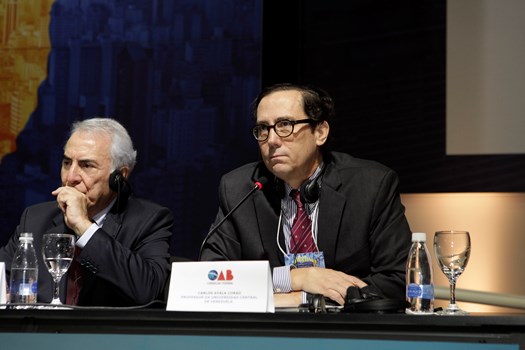 Compuseram a mesa Carlos Ayala Corao, professor da Universidade Central de Venezuela; Francisco Rezek, ministro aposentado do STF e ex-ministro das Relações Exteriores; Lorenzo Bujosa Vadell, da Universidade de Salamanca; Belisário dos Santos Jr., ex-secretário de Justiça e Cidadania do Estado de São Paulo; Beinusz Smukler, da Associação Interamericana de Juristas; Horácio Bernardes Neto, vice-presidente da International Bar Association; Maristela Basso, professora da USP; Paulo Lins e Silva, advogado.