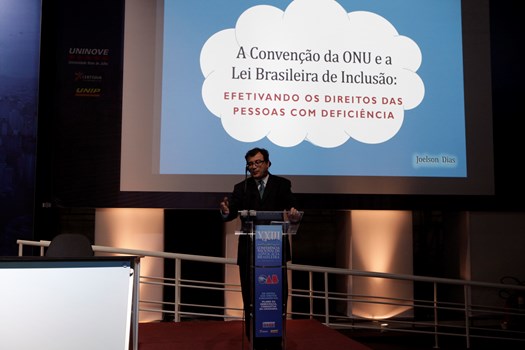 A Convenção da ONU e a efetivação dos direitos das pessoas com deficiência foi tema da intervenção de Joelson Dias, vice-presidente da Comissão Especial dos Direitos da Pessoa com Deficiência do Conselho Federal da OAB, que insistiu na necessidade de mudanças para além das leis. “Sem uma mudança cultural, de hábitos, de atitude, essa verdadeira revolução em cada indivíduo, não tem Convenção da ONU, tratado, Lei Brasileira de Inclusão, instrumento ou instituição que dará conta da efetivação desses direitos”, exortou. “Teremos sempre uma distância muito grande entre o papel e a atuação das nossas instiuições e o que está nos corações e mentes de todos nós.”