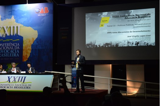 O advogado Luciano Ferraz, diretor jurídico da Companhia Energética de Minas Gerais (Cemig), apresentou um panorama das parcerias público-privadas (PPP), defendidas por ele como portadoras de um “grande princípio que é a universalização” de serviços públicos. Segundo Ferraz, os países em desenvolvimento assistiram a uma queda no volume de investimentos privado em concessões públicas no ano de 2016, mas, no caso brasileiro, há tendência de aumento nas concessões e atração de aportes.