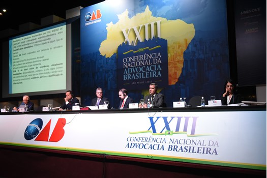 São Paulo - Os problemas decorrentes de abusos das autoridades policiais e judiciais no processo de enfrentamento contra a corrupção guiaram, nesta quarta-feira (29), o Painel 34 da XXIII Conferência Nacional da Advocacia Brasileira, em São Paulo. A mesa foi presidida pelo membro honorário vitalício da OAB Ernando Uchôa Lima, acompanhado pelo relator Guilherme Octávio Batochio e pelo secretário Maurício Gentil Monteiro.