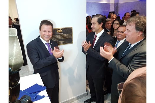 Recife (PE) – O presidente nacional da OAB, Claudio Lamachia, participou nesta quinta-feira (28) da instalação da Casa da Cidadania, nova sede da OAB Pernambuco, em Recife. A solenidade foi conduzida pelo presidente da OAB-PE, Ronnie Preuss Duarte que tinha ao seu lado toda a diretoria da OAB-PE – Leonardo Accioly (vice-presidente), Fernando Ribeiro Lins (secretário geral), Ana Luiza Mousinho (secretária geral adjunta) e Silvia Nogueira (diretora tesoureira), além do secretário-geral do CFOAB, Felipe Sarmento.