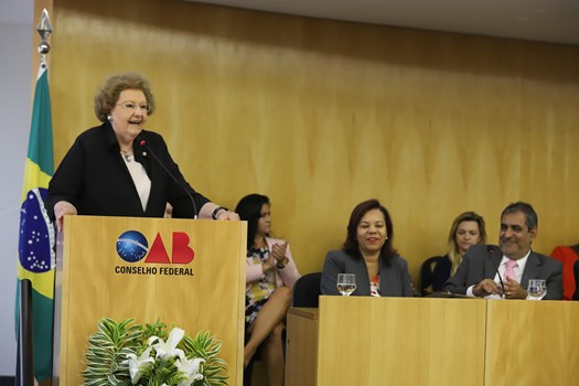 Ela destacou dois importantes acordos positivistas de garantias de direitos das mulheres: o Pacto Internacional sobre Direitos Civis e Políticos, e o Pacto Internacional sobre Direitos Econômicos, Sociais e Culturais. Lamentou, também, o fato de somente uma das 27 seccionais ser presidida por mulher. “Os dados indicam a lentidão do reconhecimento da extraordinária capacidade e do dedicado servir da mulher advogada. Em 88 anos, apenas 10 foram presidentes de seccionais. E nos quadros da diretoria nacional da Ordem, apenas 3, me incluindo”.