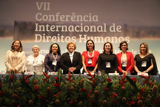 Fortaleza – Presidido pela secretária da Comissão Nacional da Mulher Advogada, Florany Maria Dos Santos Mota, o segundo painel realizado na tarde desta quinta-feira (24) durante a VII Conferência Internacional de Direitos Humanos debateu em diferentes aspectos a igualdade de gênero e múltiplas formas de violência contra a mulher. Além de Florany, participaram da mesa de debates a medalha Rui Barbosa, Cléa Carpi, a conselheira federal pelo Ceará, Francilene Gomes de Brito, a Vice-Presidente da Comissão da Mulher do Instituto dos Advogados Brasileiros, Maria Margarida Ellenbogen Pressburger, a professora da Universidade Federal do Pará e membro da Comissão Nacional de Direitos Humanos, Luanna Tomas de Souza, e a professora da Universidade Federal do Ceará, Juliana Diniz.