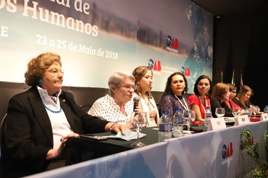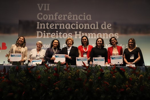 Fortaleza – Presidido pela secretária da Comissão Nacional da Mulher Advogada, Florany Maria Dos Santos Mota, o segundo painel realizado na tarde desta quinta-feira (24) durante a VII Conferência Internacional de Direitos Humanos debateu em diferentes aspectos a igualdade de gênero e múltiplas formas de violência contra a mulher. Além de Florany, participaram da mesa de debates a medalha Rui Barbosa, Cléa Carpi, a conselheira federal pelo Ceará, Francilene Gomes de Brito, a Vice-Presidente da Comissão da Mulher do Instituto dos Advogados Brasileiros, Maria Margarida Ellenbogen Pressburger, a professora da Universidade Federal do Pará e membro da Comissão Nacional de Direitos Humanos, Luanna Tomas de Souza, e a professora da Universidade Federal do Ceará, Juliana Diniz.
