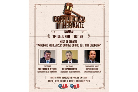 Antes, às 16h, será realizada uma reunião interna com a presença dos representantes da Corregedoria-Geral do Conselho Federal da OAB, da presidente da seccional – Fernanda Marinela, da diretoria do Tribunal de Ética e Disciplina da OAB-AL e dos membros da Corregedoria local.