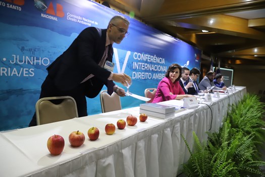 As palestras do painel 7 foram abertas por Marcelo Abelha, professor da UFES. Ele iniciou distribuindo maçãs para a plateia e informou que ao final de sua exposição explicaria o porquê do ato de gentileza. Sua apresentação tratou sobre a tutela jurídica contra o risco ambiental decorrente da utilização dos agrotóxicos.