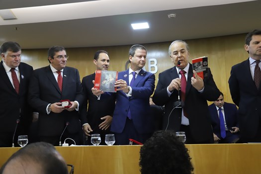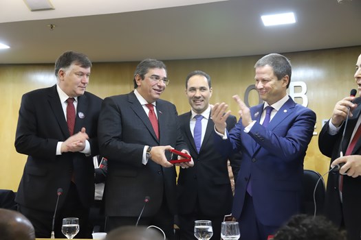 Brasília – Nesta terça-feira (4), durante reunião do Conselho Pleno da OAB, a Associação Brasileira dos Advogados Criminalistas (Abracrim), em nome da advocacia criminalista, homenageou a Ordem – na pessoa do presidente Claudio Lamachia – com uma medalha comemorativa dos 25 anos da instituição, assim como o presidente da Comissão Nacional de Defesa das Prerrogativas e Valorização da Advocacia, Cassio Telles, como membro honorário.