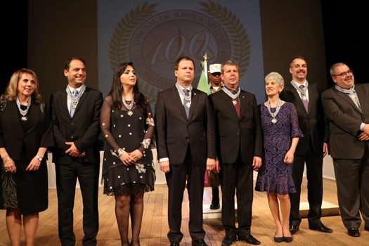Durante a solenidade, foram entregues medalhas a autoridades e representantes civis por reconhecimento e mérito a ações e serviços prestados ao TJMRS.