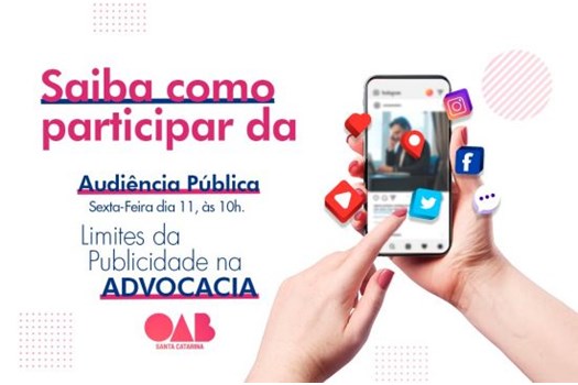 “Queremos saber o que pensam os advogados e advogadas catarinenses sobre o tema. Se a OAB precisa ser mais flexível ou mais firme na fiscalização e quais os parâmetros deve seguir. Para nós, a opinião de todos é importante para liderarmos essa discussão em âmbito nacional”, anunciou o presidente da OAB-SC, Rafael Horn. Será possível acompanhar a audiência pública ao vivo pelo link.