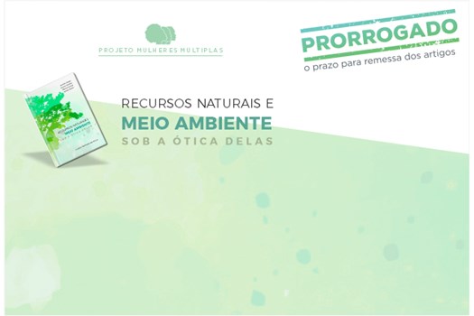 O Projeto Mulheres Múltiplas prorrogou para o dia 23 de dezembro o prazo para o recebimento de artigos que vão compor o volume II da obra “Recursos Naturais e Meio Ambiente sob a ótica delas”. O prazo inicial para o envio dos trabalhos venceu no dia 25 de novembro, mas agora foi prologando até 23 de dezembro.