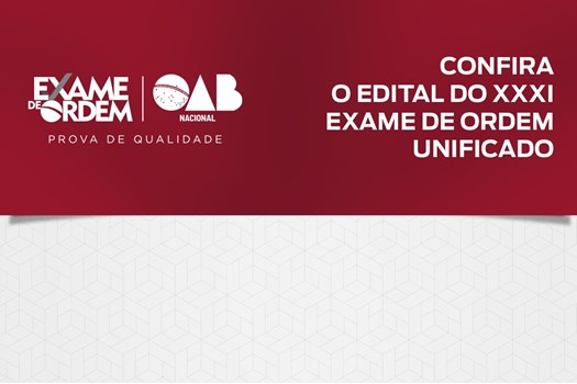 O Conselho Federal da OAB divulgou, nesta segunda-feira (2), o edital de abertura do XXXI Exame de Ordem Unificado. As inscrições poderão ser feitas entre os dias 2 de dezembro de 2019 (17h) e 9 de dezembro de 2019 (17h). O último dia para pagamento da taxa de inscrição é 20 de janeiro de 2020.