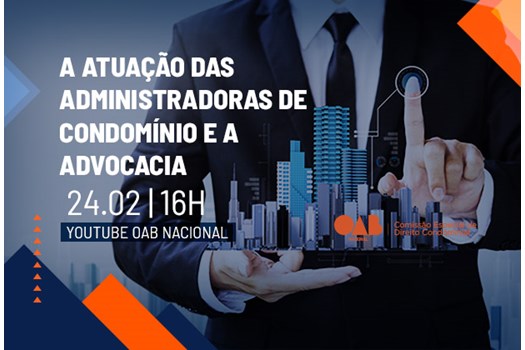 Condominial, promoverá debate "A Atuação das Administradoras de Condomínio e a Advocacia". O evento acontece na quarta-feira (24), a partir das 18h.